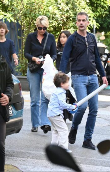 Οι δυο τους έκαναν ένα διάλλειμα από τις επαγγελματικές τους υποχρεώσεις και βρέθηκαν στο κέντρο της Αθήνας μαζί με τον Δήμο. Μαζί τους βρέθηκανν και τα δύο παιδιά του Κώστα Μπακογιάννη από τον πρώτο του γάμο, η Δανάη και ο Παύλος.