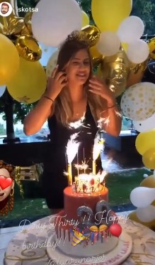 Την τρίτη τούρτα δεν την περίμενε καθώς της την έφεραν οι φίλοι της κάνοντας της έκπληξη με ένα υπερθέαμα βεγγαλικών!