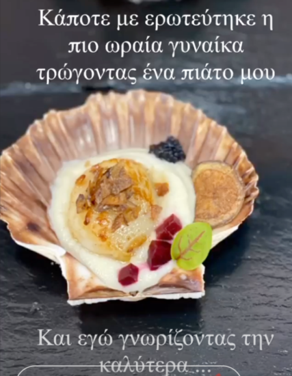 O σεφ Λευτέρης Σουλτάτος δημοσίευσε ένα στιγμιότυπο που απεικονίζεται ένα πιάτο του. Δίπλα έγραψε με τρυφερό τρόπο κάποια λόγια για την αγαπημένη του Βάσω Λασκαράκη.