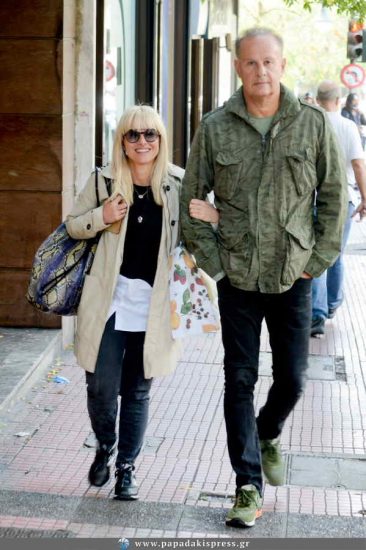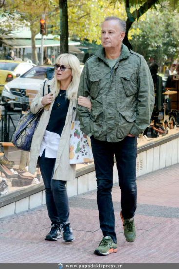 Την Μαρία Μπεκατώρου συνάντησε ο φωτογραφικός μας φακός με το σύζυγό της, Αντώνη Αλεβιζόπουλο στο κέντρο της Αθήνας.