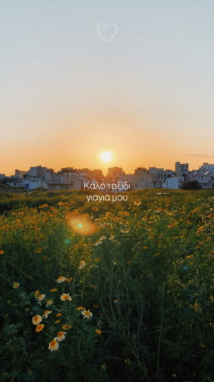 Aνέβασε στο instastories της, μια εικόνα από ένα ανθισμένη πλαγιά και στο βάθος την πόλη στο βάθος της οποίας ο ήλιος δύει. Και η ίδια να γράφει αποκαλύπτοντάς μας την απώλεια που βιώνει. “Καλό ταξίδι γιαγιά μου”, ήταν η λακωνική αναφορά της Μαίρης Συνατσάκη στο θάνατο της γιαγιάς της.