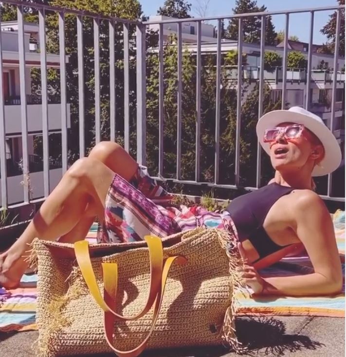 Αφού δε βρίσκεται κάτω από τον ελληνικό ήλιο αποφάσισε να κάνει ηλιοθεραπεία για να διατηρήσει το μαύρισμά της στην ηλιόλουστη Ζυρίχη.