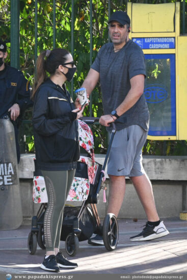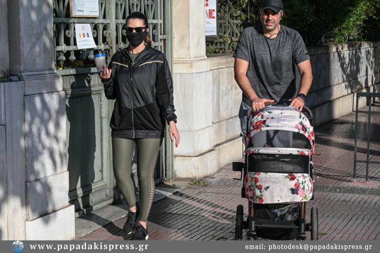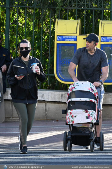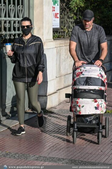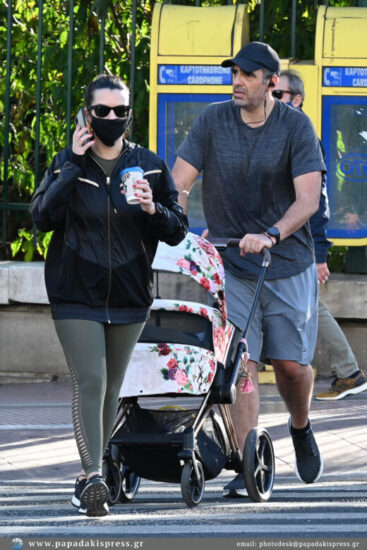 Και οι δύο με athleisure casual look, έκαναν την άσκησή τους, έχοντας μαζί τη κορούλα της. Η μικρούλα απόλαυσε και αυτή τη βόλτα μέσα από το καρότσι της.