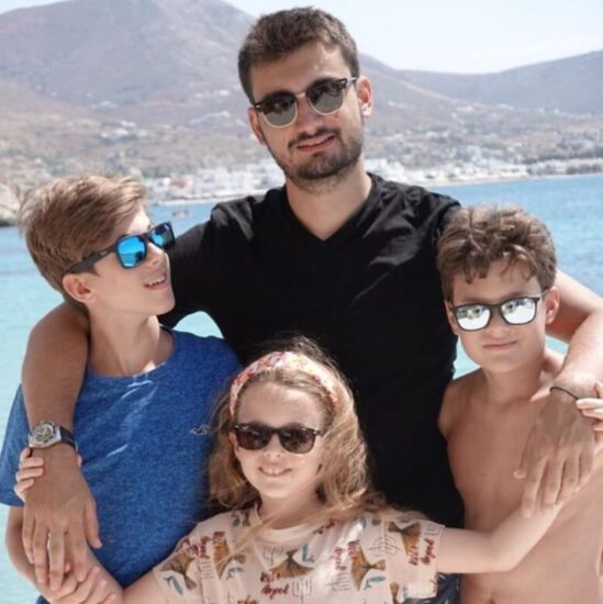 Ο μεγαλύτερος γιος του Πάνος, κρατά στην αγκαλιά του τα μικρότερα αδέρφια του, δείχνοντας πόσο τρυφερός είναι. Το σχόλιο του δημοσιογράφου; Περιγράφει ακριβώς τη φωτογραφία: «Τα αστέρια μου! Το καλοκαίρι της καρδιάς μου!».