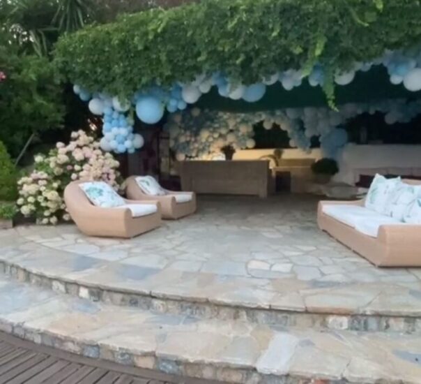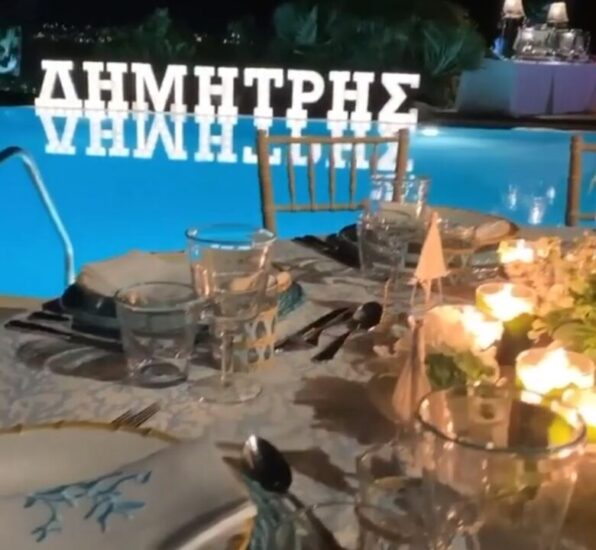 Στιγμιότυπα από το μυστήριο, το τραπέζι που έγινε σε ένα απολύτως καλοκαιρινό σκηνικό με κοχύλια, ορτανσίες και μπαλόνια, δημοσίευσε η αδελφή του πατέρα, Σίλια Κριθαριώτη.