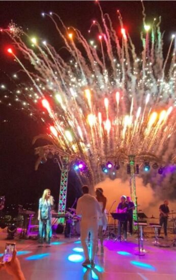 Το ζευγάρι επέλεξε να στολίσει τη βίλα και την εκκλησία όπου ενώθηκαν με τα ιερά δεσμά του γάμου, με κρίνους και λευκά κεριά. Στο art de latable κυριαρχούσαν οι ασημένιοι δίσκοι στον στολισμό των τραπεζιών.