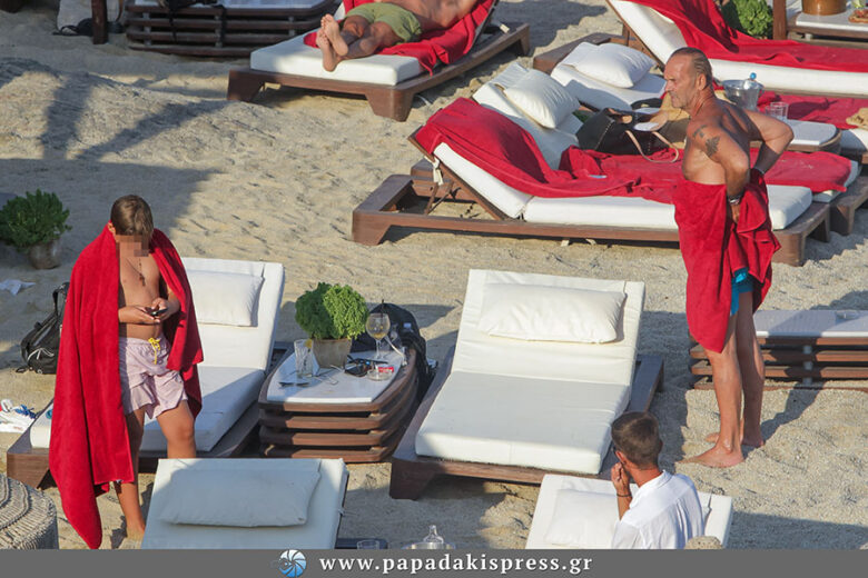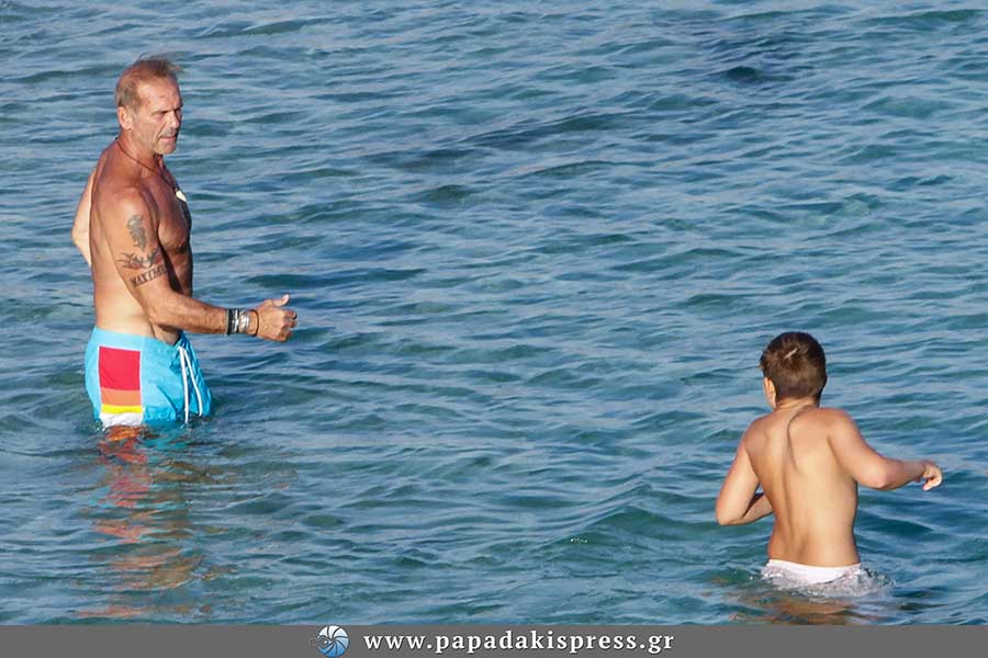 Σε χαλαρές στιγμές με το γιο του σε παραλία της Μυκόνου, συναντήσαμε τον Πέτρο Κωστόπουλο.