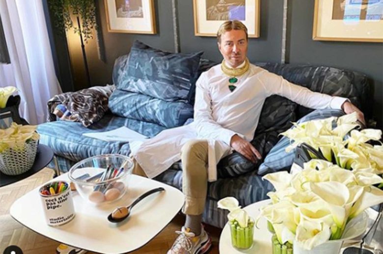 Ο Λάκης Γαβαλάς ανατρεπτικός όπως πάντα, έβαψε τα αυγά με το χέρι, με αφηρημένες χρωματιστές πινελιές. Διακόσμησε τα αυγά πάνω σε μια κουτάλια, προτείνοντας μας ένα ευφάνταστο art de la table για το βράδυ της Ανάστασης.