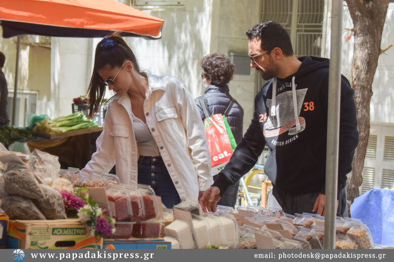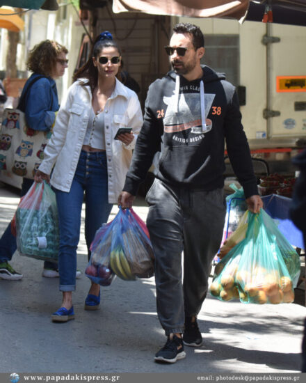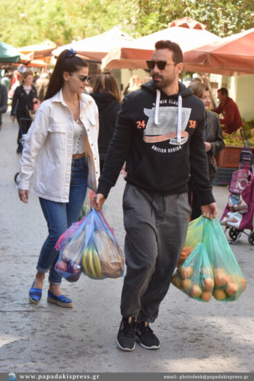 Έτσι ο φωτογραφικός μας φακός τους συνάντησε στην τοπική λαϊκή αγορά, ενώ έκαναν τα ψώνια τους μαζί. Ήταν ευδιάθετοι και χαμογελαστοί, έκαναν πλάκα και συζητούσαν με πολλούς από τους πωλητές οι οποίοι τους αναγνώριζαν. Φυσικά ο Σάκης Τανιμανίδης, κουβαλούσε τις περισσότερες τσάντες, αφήνοντας ελάχιστο βάρος για την αγαπημένη του.