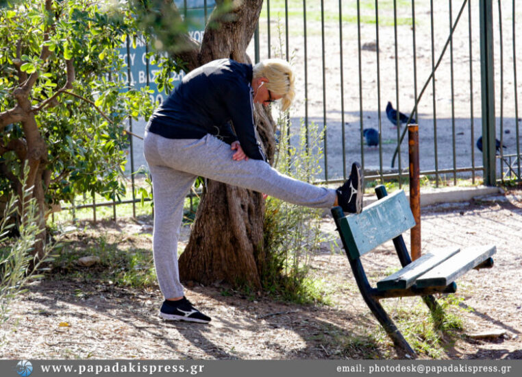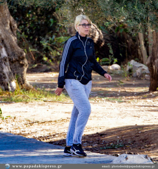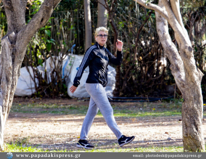 Με athleisure look και χωρίς τον άντρα της, Κώστα Μπακογιάννη και το γιο της, Δήμο απόλαυσε τη γυμναστική της. Μάλιστα, έκανε και ασκήσεις σε πάρκο στο κέντρο της Αθήνας. Ο καιρός ήταν ηλιόλουστος με αποτέλεσμα να αφιερώσει αρκετό χρόνο για την άσκησή της.