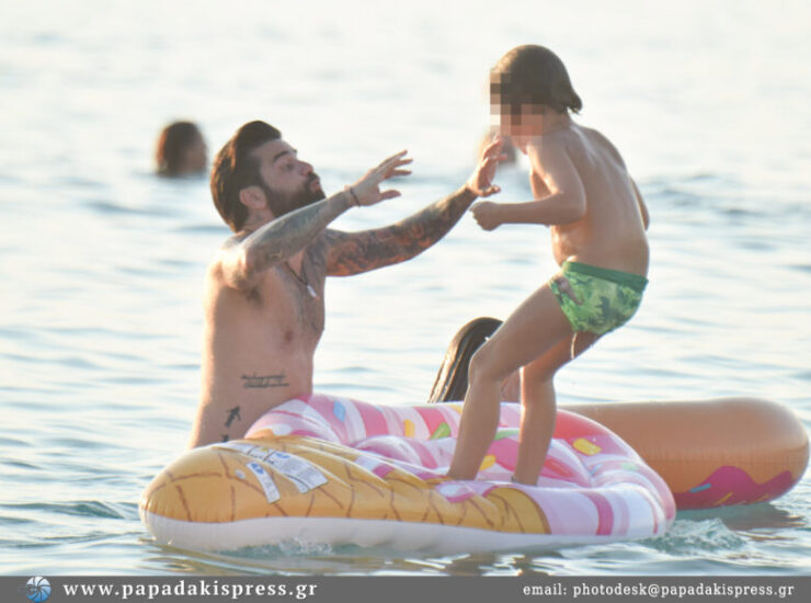 Τα παιδιά ξετρελλάθηκαν με την παρέα του μπαμπά τους, αλλά κι εκείνος έπαιξε με την ψυχή του με τον Φίλιππο Ραφαήλ και τον Μιχαήλ Άγγελο, στα γαλανά νερά της Χαλκιδικής.