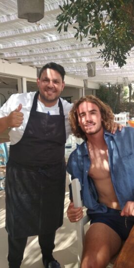 Ο διάσημος Έλληνας τενίστας αφού κολύμπησε στα γαλανά νερά, στη συνέχεια κάθισε για φαγητό. Στο γνωστό παραθαλάσσιο εστιατόριο Liasti γεύτηκε την αστακομακαρονάδα του φημισμένου σεφ Μάσιμο κι άλλους εκλεκτούς θαλασσινούς μεζέδες.