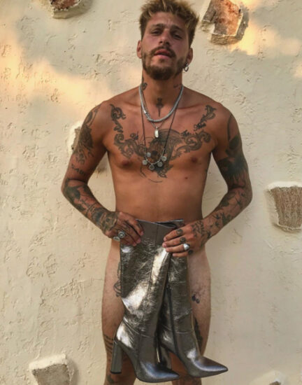 Το γνωστό μοντέλο δημοσίευσε στο προφίλ του μια από τις πιο hot φωτογραφίες του, στην οποία πόζαρε ολόγυμνος, καλύπτοντας τα επίμαχα σημεία του κορμιού του με ένα ζευγάρι γυναικείες μπότες. Έτσι, μας έδειξε για πρώτη ίσως φορά, όλα τα τατουάζ που έχει «χτυπήσεις» στο σώμα του.