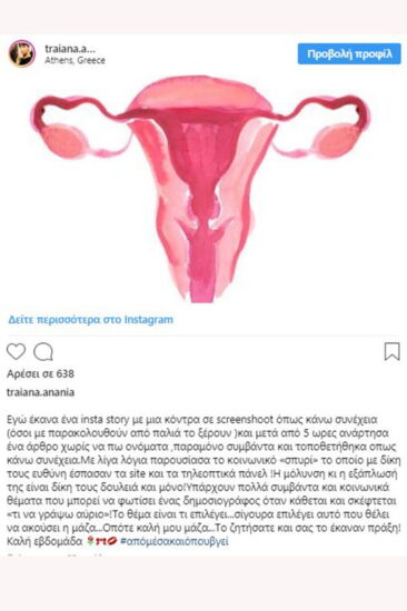 Μετά τον Κυριάκο Παπαδόπουλο, η Τραϊάνα Ανανία βάζει τώρα στο στόχαστρό της τους δημοσιογράφους και τα Μέσα Ενημέρωσης στους οποίους απαντά για την κριτική που της άσκησαν με μια φωτογραφία ενός… γυναικείου κόλπου.