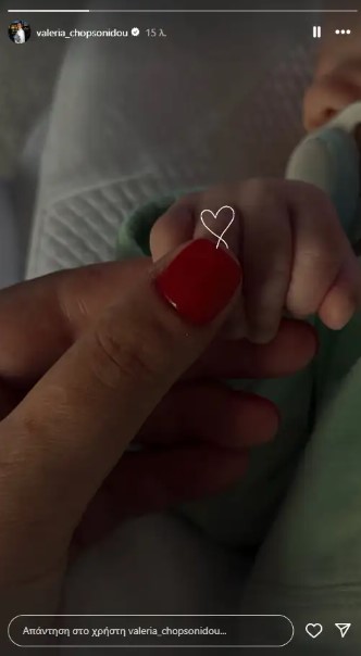 Σε νέα της ανάρτηση το πρωί της Τετάρτης 27 Αυγούστου η Βαλέρια Χοψονίδου μοιράστηκε ένα στιγμιότυπο με το χεράκι του μωρού της βάζοντας μια λευκή καρδιά.