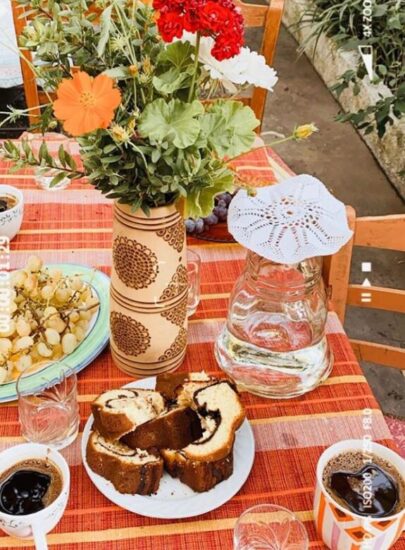 “Tο πατρικό σπίτι της πεθεράς μου στο χωριό Ξενιάκος ο χρόνος μοιάζει να έχει σταματήσει σε άλλες δεκαετίες μακρινές! Παλιές κανάτες με σεμεδάκι, ελληνικός καφές λίγο σπιτικό κέικ ,τυρί ντόπιο και σταφύλια που τα παιδιά έκοψαν μόνα τους από την κληματαριά του σπιτιού και ομολογουμένως ήταν τα πιο αρωματικά που δοκιμάσαμε τα τελευταία χρόνια!