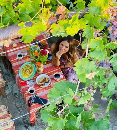 Χθες η ηθοποιός βρέθηκε στο πατρικό σπίτι του αγαπημένου της στο χωριό Ξενιακός μόνο με την κόρη της. Καθώς ο΄ίδιος είχε επαγγελματικές υποχρεώσεις. Εκεί, γευμάτισε με την πεθερά της και δημοσίευσε φωτογραφίες από το γραφικό τοπίο. Σε μία της ανάρτηση έγραψε μαγεμένη από την ομορφιά του χωριού: