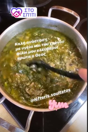 Και φυσικά δεν θα μπορούσε να λείψει από το τραπέζι η μαγειρίτσα δια χειρός Λευτέρη Σουλτάτου. Η Βάσω Λασκαράκη ως γνήσια σύντροφος σεφ, αυτή την περίοδο που δεν έχει γυρίσματα για το “ερωτας μετά” το έχει ρίξει κι αυτή στη μαγειρική.