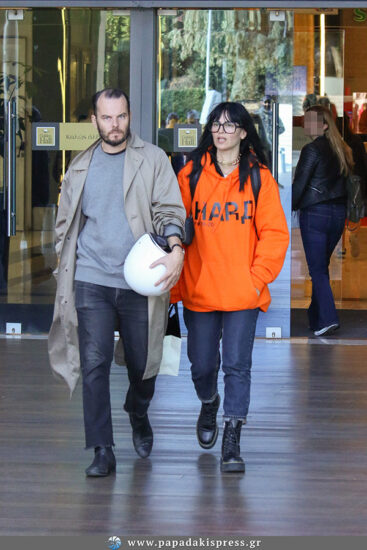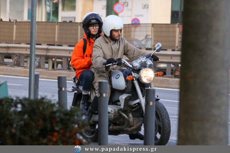 Είναι από τις σπάνιες δημόσιες εμφανίσεις του ζευγαριού, το οποίο πάντως απολαμβάνει να κάνει βόλτες στα μαγαζιά και με τη μηχανή του.