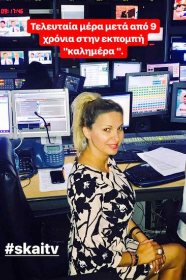 Η επί χρόνια συνεργάτιδα του Γιώργου Αυτιά, αποχωρεί μετά από εννέα χρόνια από την εκπομπή του Σκάϊ και το ανακοίνωσε με συγκινητικό τρόπο μέσω διαδικτύου: «Τελευταία μέρα μετά από 9 χρόνια στην εκπομπή καλημέρα»!