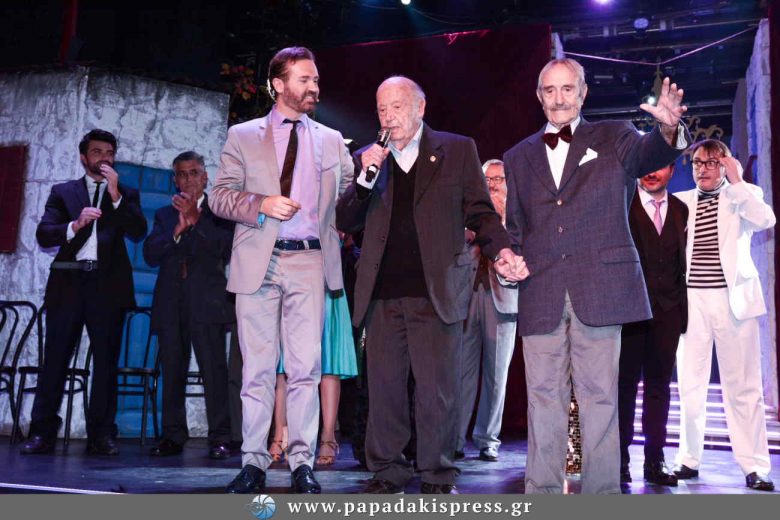 Η επιστροφή του 91χρονου ηθοποιού στο θεατρικό σανίδι, έγινε με ένα μιούζικαλ στο οποίο είχε ο ίδιος γνωρίσει μεγάλη επιτυχία πριν από 50 χρόνια και ευλόγως η συγκίνησή του ήταν μεγάλη. Έγινε ακόμη μεγαλύτερη δε από την παρουσία στην πρεμιέρα της παράστασης, της συμπρωταγωνίστριάς του Μαίρης Χρονοπούλου και του συνθέτη Μίμη Πλέσσα.