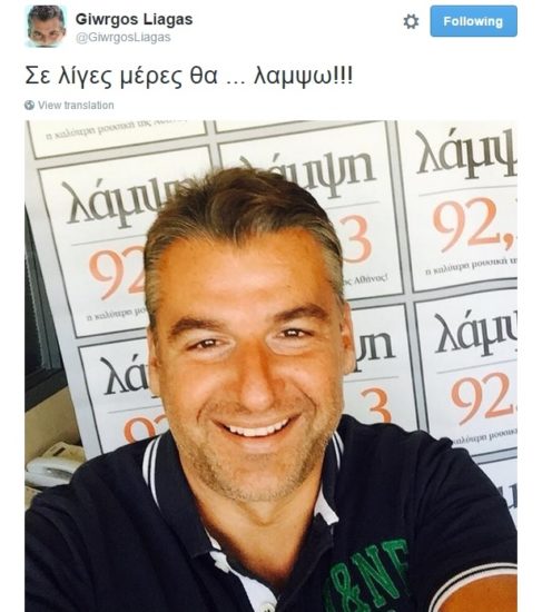 «Σε λίγες μέρες θα … λάμψω» σχολίασε ο Γιώργος Λιάγκας, ο οποίος θα καλημερίζει καθημερινά τους ακροατές του στη ζώνη 07:00-10:00 μέσα από τη συχνότητα του «Λάμψη 92,3».
