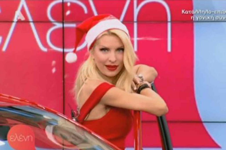 Η παρουσιάστρια της μεσημεριανής εκπομπής του Alpha, «Ελένη» καλησπέρισε το τηλεοπτικό κοινό, φορώντας ένα κατακόκκινο φόρεμα, ένα ζευγάρι κόκκινες γόβες και ένα σκουφάκι του Άγιου Βασίλη στο κεφάλι της.