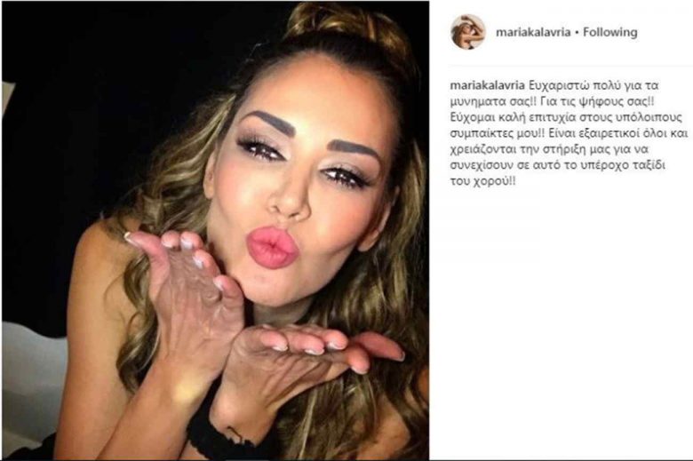Tο πρώτο της μήνυμα στους διαδικτυακούς της φίλους έστειλε η Μαρία Καλάβρια, λίγες ώρες μετά την αποχώρησή της από το «Dancing with the Stars».