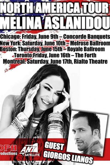 Ετοιμάζει τις αποσκευές της για 5 συναυλίες σε Αμερική και Καναδά η Μελίνα Ασλανίδου, η οποία θα ξεκινά περιοδεία έχοντας μαζί της τον Γιώργο Λιανό.