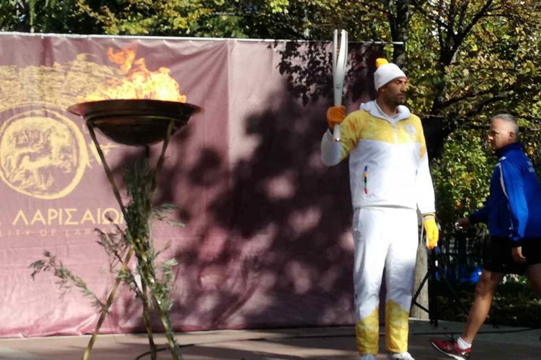 Ακολούθησε το Λιτόχωρο, στη σκιά της κατοικίας των Θεών, του Ολύμπου και μετά η Λάρισα, όπου τη Φλόγα έδωσε στον τελευταίο Λαμπαδηδρόμο, πρώην διεθνή παίκτη μπάσκετ, Δήμο Ντικούδη, η πρωταθλήτρια του στίβου Λίλη Αλεξούδη.