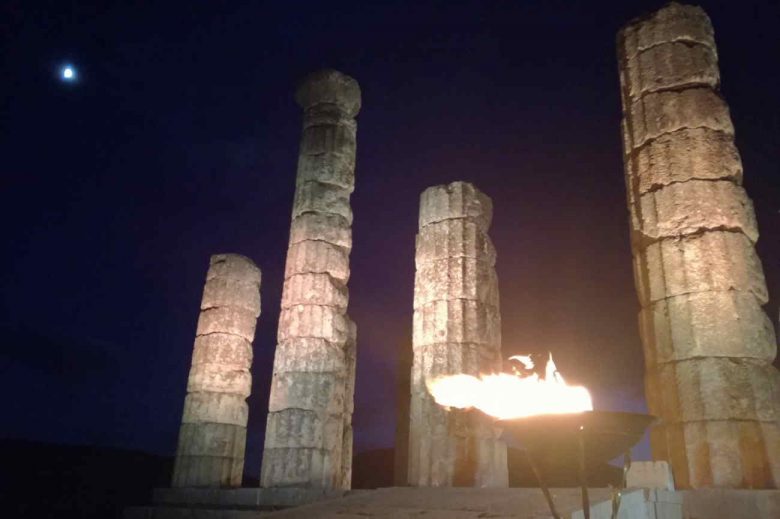To σύμβολο του Ολυμπισμού εισήλθε στον αρχαιολογικό χώρο στα χέρια της Γεωργίας Μαρρέ και μεταλαμπαδεύτηκε στο βωμό που είχε στηθεί στον Ναό του Θεού Απόλλωνα, προκαλώντας ρίγη συγκίνησης σε όλους τους παρισταμένους που έζησαν μοναδικές στιγμές.
