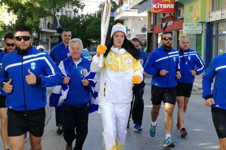 Το ταξίδι της Φλόγας το πρωί της Κυριακής ξεκίνησε από τη Νάουσα, για να περάσει από τη Βέροια και την Κατερίνη, όπου το βωμό άναψε η Ολυμπιονίκης της κωπηλασίας Κατερίνα Νικολαϊδου.