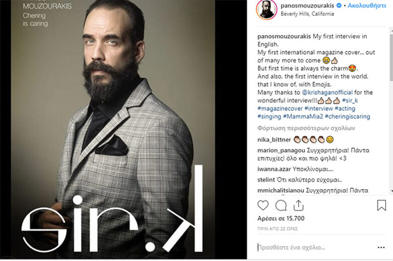 Μετά τον σύντομο ρόλο του στο prequel της ταινίας Mamma Mia, ήρθε και το πρώτο του εξώφυλλο σε διεθνές περιοδικό για τον Πάνο Μουζουράκη.