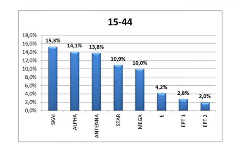 Σύμφωνα με τα στοιχεία της NIELSEN, ο ΣΚΑΪ ήταν πρώτος τόσο στο σύνολο του κοινού, όσο και στις ηλικίες 15-44.