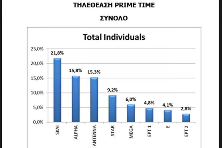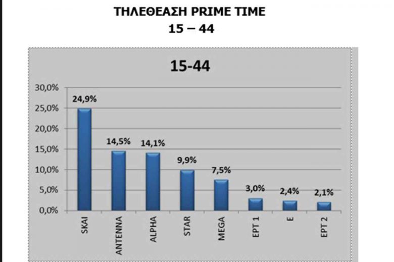Εντυπωσιακή ήταν και η πρωτιά στο prime time, τόσο στο σύνολο του κοινού, όσο και στις ηλικίες 15-44.