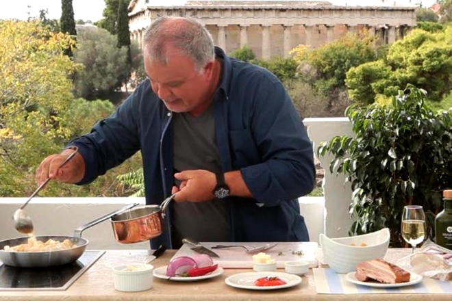 Αυτή τη φορά, ετοιμάζει μύδια αχνιστά με αρωματικά βότανα και κρασί με τη βοήθεια του Δημήτρη Ανυφαντή. Πίσω στο Θησείο, που για άλλη μια φορά γεμίζει με υπέροχες μυρωδιές, μας μαθαίνει να κάνουμε λεμονάτη σούπα με σολομό για τις κρύες βραδιές…