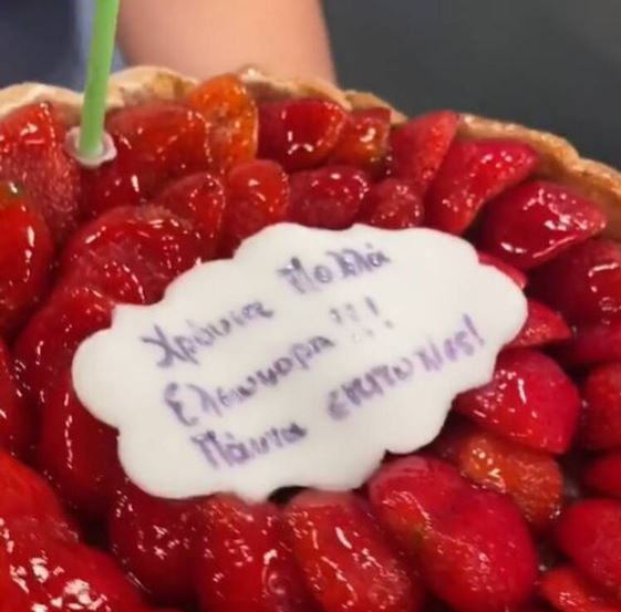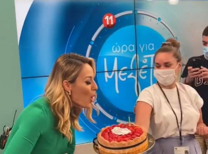 Πριν ξεκινήσει την τηλεοπτική εκπομπή της πρόσφεραν μία τούρτα με φράουλες.
