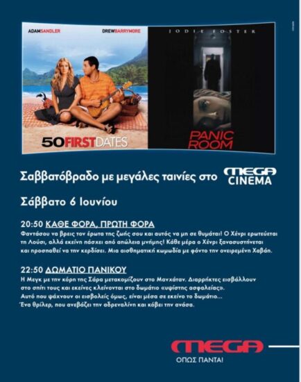 Βραδιές σινεμά καθιερώνει το Mega. Μεγάλες ταινίες και blockbusters, θα κρατούν κάθε Σαββατόβραδο συντροφιά στους τηλεθεατές.