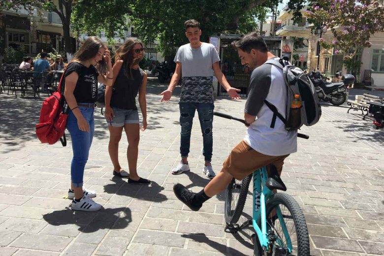 Ξεκινούν την ημέρα τους με αγώνα beach volley στην αγαπημένη τους παραλία «Άγιοι Απόστολοι». Στη συνέχεια, πηγαίνουν στην κεντρική πλατεία, κοντά στο λιμάνι, και προσκαλούν κόσμο για τον διαγωνισμό μαντινάδας. Δεν θα μπορούσαν φυσικά να παραλείψουν τις κρητικές λιχουδιές. Για τον λόγο αυτό, μας ξεναγούν στην παλιά αγορά… Το βίντεό τους κλείνει με διασκέδαση στην πλατεία Μητροπόλεως, παρέα με τους περαστικούς.