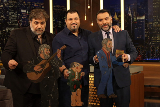 Μια μοναδική παράσταση Καραγκιόζη έρχεται στο πλατό του «Τhe 2night Show» από το θέατρο Σκιών του Χρήστου Στανίση. Ο Γρηγόρης Αρναούτογλου και ο Δημήτρης Σταρόβας γίνονται φιγούρες του Θεάτρου Σκιών και «ζωντανεύουν» πίσω από το πανί.