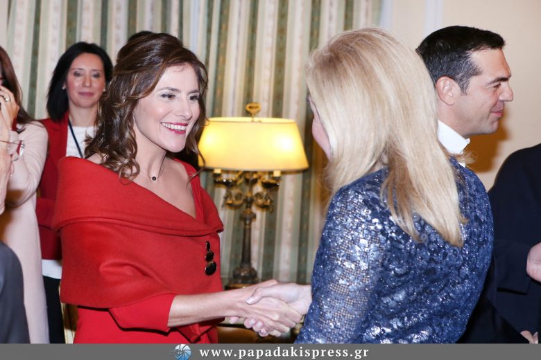 Η Μπέττυ Μπαζιάνα εντυπωσίασε με την εμφάνισή της, για την οποία επέλεξε ένα φόρεμα σε έντονο, κόκκινο χρώμα και ένα clutch τσαντάκι στο ίδιο χρώμα. Η Πρώτη Κυρία της Ελλάδας είχε τα μαλλιά της ελαφρώς πιασμένα με ένα σικ χτένισμα, ενώ δεν πρόσθεσε αξεσουάρ το σύνολό της.