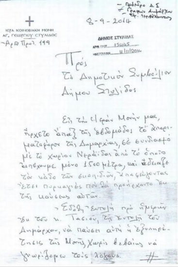 Δείτε στις φωτογραφίες τις επιστολές του αρχιμανδρίτη και του δημάρχου Στυλίδας…