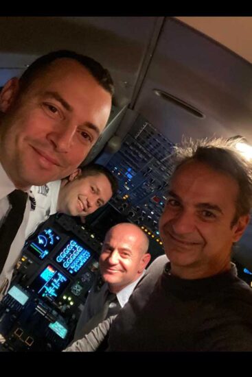 Επίσκεψη στο πιλοτήριο του αεροπλάνου το οποίο τον μετέφερε από την Κίνα στην Ελλάδα, έκανε ο Κυριάκος Μητσοτάκης.