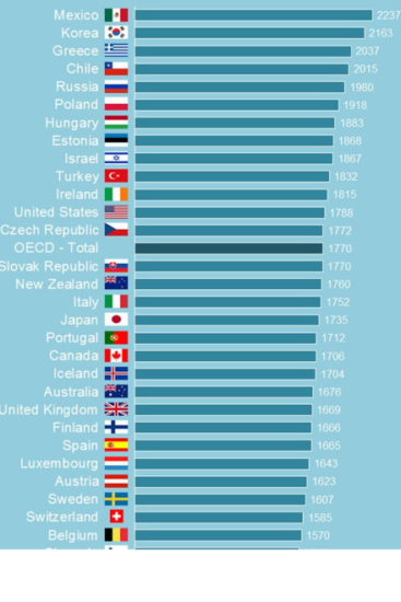 Για να καταλήξουν στην κατάταξη, τα στελέχη του ΟΟΣΑ, προσμέτρησαν τις ώρες πραγματικής εργασίας με τον αριθμό των απασχολούμενων στην κάθε χώρα.