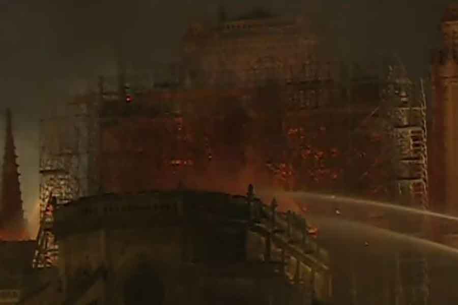 Οι φλόγες ξεκίνησαν νωρίς το απόγευμα της Μεγάλης Δευτέρας για τους Καθολικούς και τύλιξαν σε χρόνο ρεκόρ ολόκληρο το κτήριο το οποίο καίγεται και υπάρχουν φόβοι για τεράστια καταστροφή. Δυστυχώς πολύ γρήγορα το βέλος του κωδωνοστασίου κατέρρευσε για να ακολουθήσει στη συνέχεια η κατάρρευση της υπόλοιπης στέγης και του ρολογιού της πρόσοψης.
