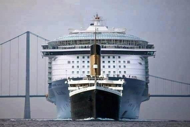 Πώς θα έμοιαζε όμως το ιστορικό υπερωκεάνιο μπροστά σε ένα σύγχρονο κρουαζιερόπλοιο;