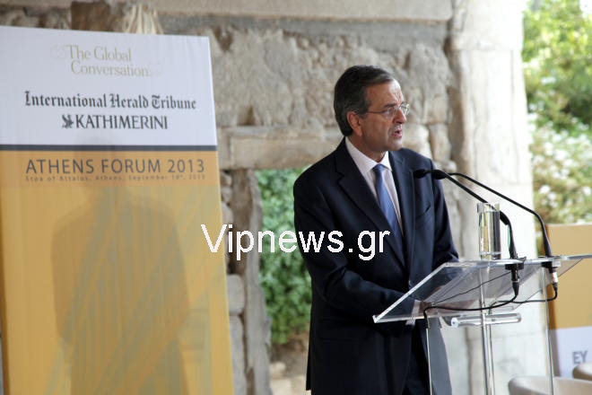 Ο Πρωθυπουργός Αντώνης Σαμαράς ανέφερε στην ομιλία του πως παρά τις δυσκολίες που αντιμετωπίζει η ελληνική κοινωνία και τους κινδύνους που θέτουν οι λαϊκιστές και οι εξτρεμιστές, είναι αισιόδοξος πως θα επιτευχθούν οι αναπτυξιακοί ρυθμοί που θα βγάλουν τη χώρα από την κρίση, καταλήγοντας ότι: «Η Δημοκρατία μπορεί να εξέλθει δυνατότερη και καλύτερη μέσω της πίεσης».