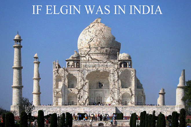 Με μία σειρά φωτογραφιών από τις καταστροφές που θα μπορούσε να είχε προκαλέσει ο λόρδος Έλγιν σε άλλα σημαντικά μνημεία του κόσμου, ο Άρης Καλογερόπουλος που βρίσκεται πίσω από το “I am Greek and i wanna go home“, δείχνει σε όλο τον κόσμο τη μεγάλη ζημιά που έκανε ο Άγγλος ευγενής στη χώρα μας και το μνημείο του Παρθενώνα.