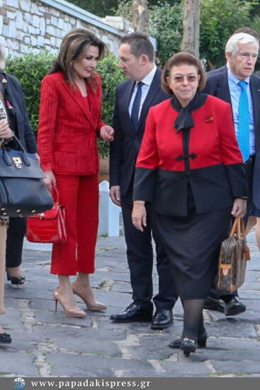 Στο γεύμα από Ελληνικής πλευράς, συμμετείχαν ο υπουργός Εξωτερικών Νίκος Δένδιας, ο κυβερνητικός εκπρόσωπος Στέλιος Πέτσας, η υπουργός Πολιτισμού Λίνα Μενδώνη, η διπλωματική σύμβουλος του πρωθυπουργού Αλεξάνδρα Παπαδοπούλου και ο Αλέξης Πατέλης, επικεφαλής του Οικονομικού Γραφείου του πρωθυπουργού. Επίσης, συμμετείχαντο γεύμα ήταν η επικεφαλής της επιτροπής «Ελλάδα 2021» Γιάννα Αγγελοπούλου, ο πρύτανης του ΕΚΠΑ Θάνος Δημόπουλος, οι εφοπλιστές Γιώργος Προκοπίου, Μελίνα Τραυλού και Πάνος Λασκαρίδης, καθώς και οι επιχειρηματίες Μιχάλης Λεμπιδάκης και Αχιλλέας Κωνσταντακόπουλος.