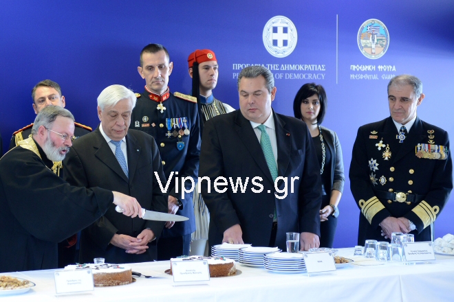 Με την παρουσία του προέδρου της Δημοκρατίας Προκόπη Παυλόπουλου και του υπουργού Άμυνας Πάνου Καμμένου, έγινε η κοπή της πρωτοχρονιάτικης πίτας της Προεδρικής Φρουράς.